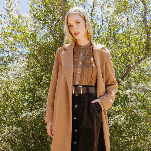 @cellajaneblog brings effortless ease to fall in the Acacia Top and Marlowe Denim Midi Skirt.