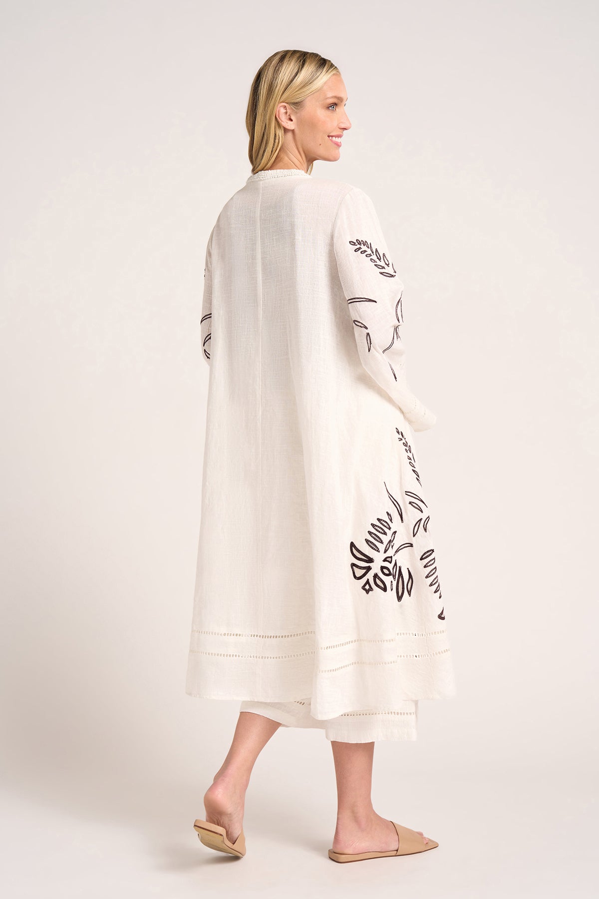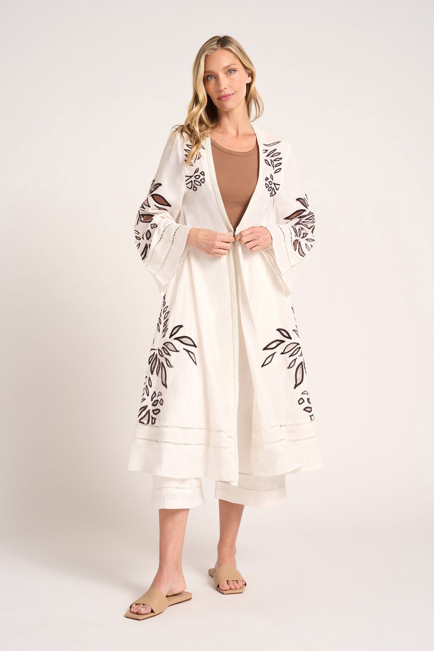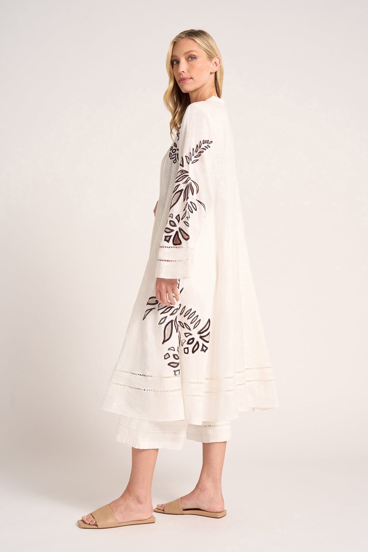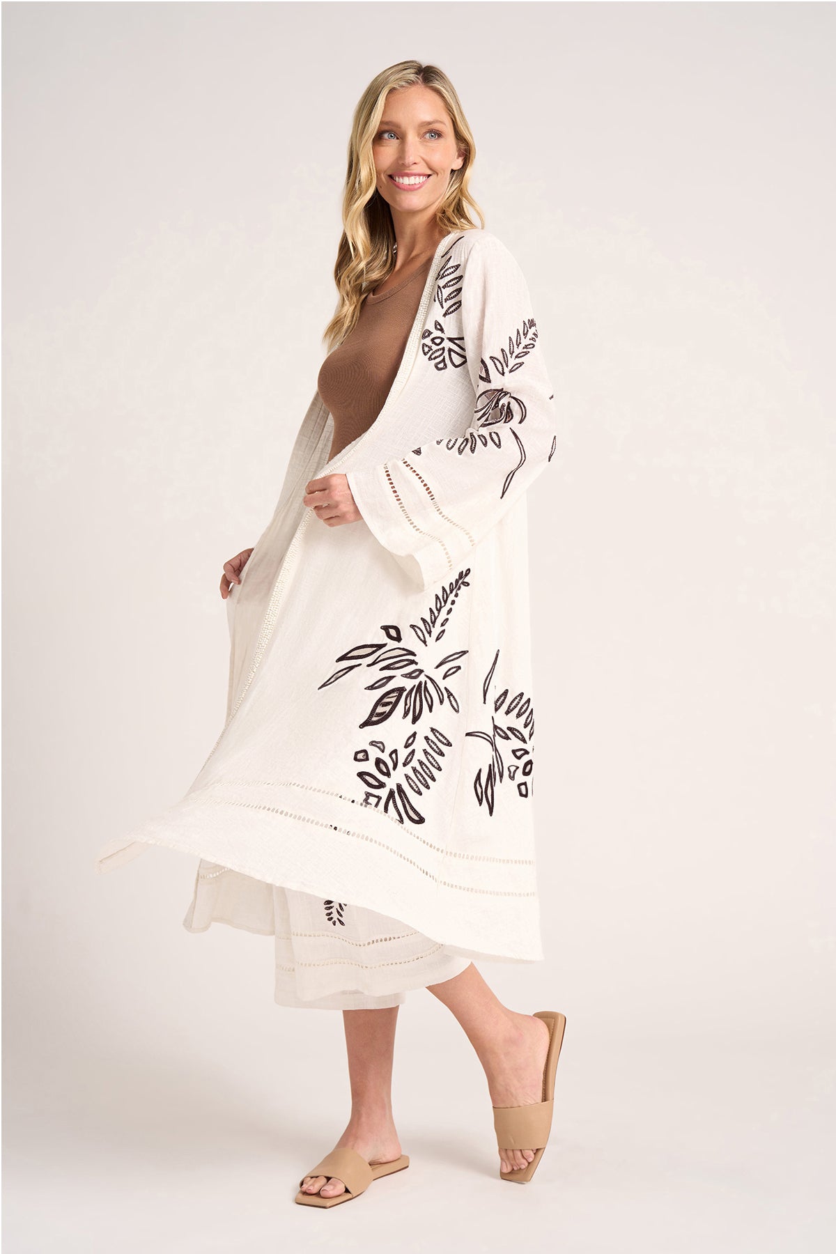 SOPHIE EMBROIDERED DUSTER - WHITE/CHOCOLATE